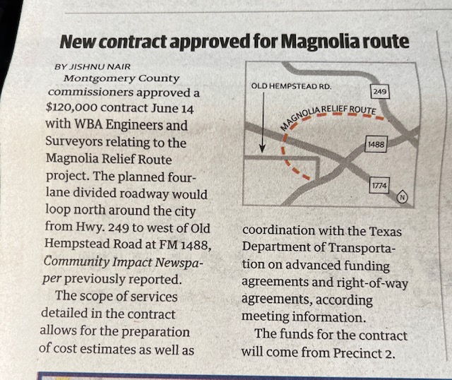 The Magnolia Relief Route FM1488 project may affect some of our neighbors. Updated 7/29/2022