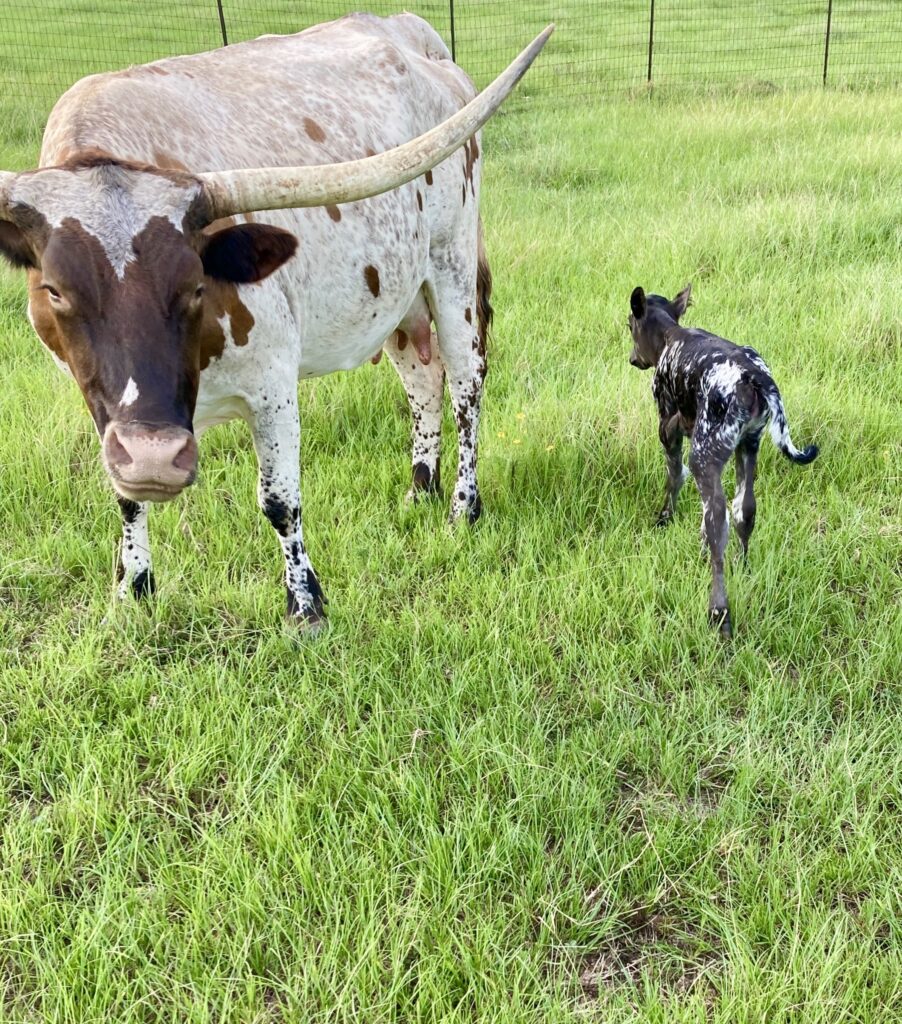 Longhorn Mama and Baby (One day old) Photo courtesy of B. Meyers